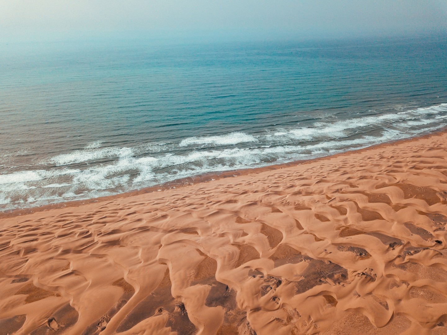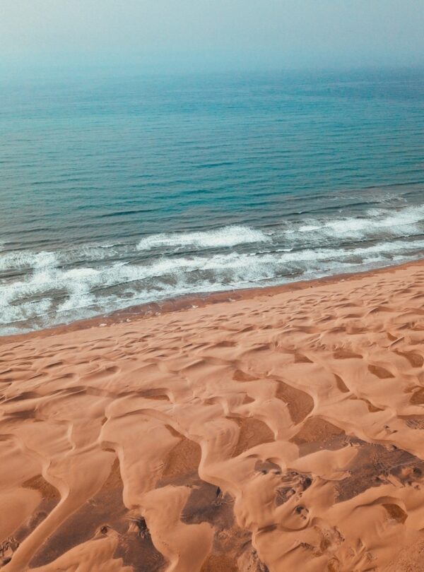 Rencontre avec nos chameliers au gîte et début de la randonnée à travers les dunes et des espaces immenses et ressemblant au désert le long de la magnifique plage de sidi Kawki qui fait le bonheur des chercheurs de moments de tranquillité face à l'immensité de l'océan, pause au bout de la première plage face à l'océan, rencontre avec les pêcheurs, avant de monter par le sentier au-dessus des falaises en direction de Sidi M’Barek. Traversée de 3 plages les pieds dans l’eau,. Baignade!