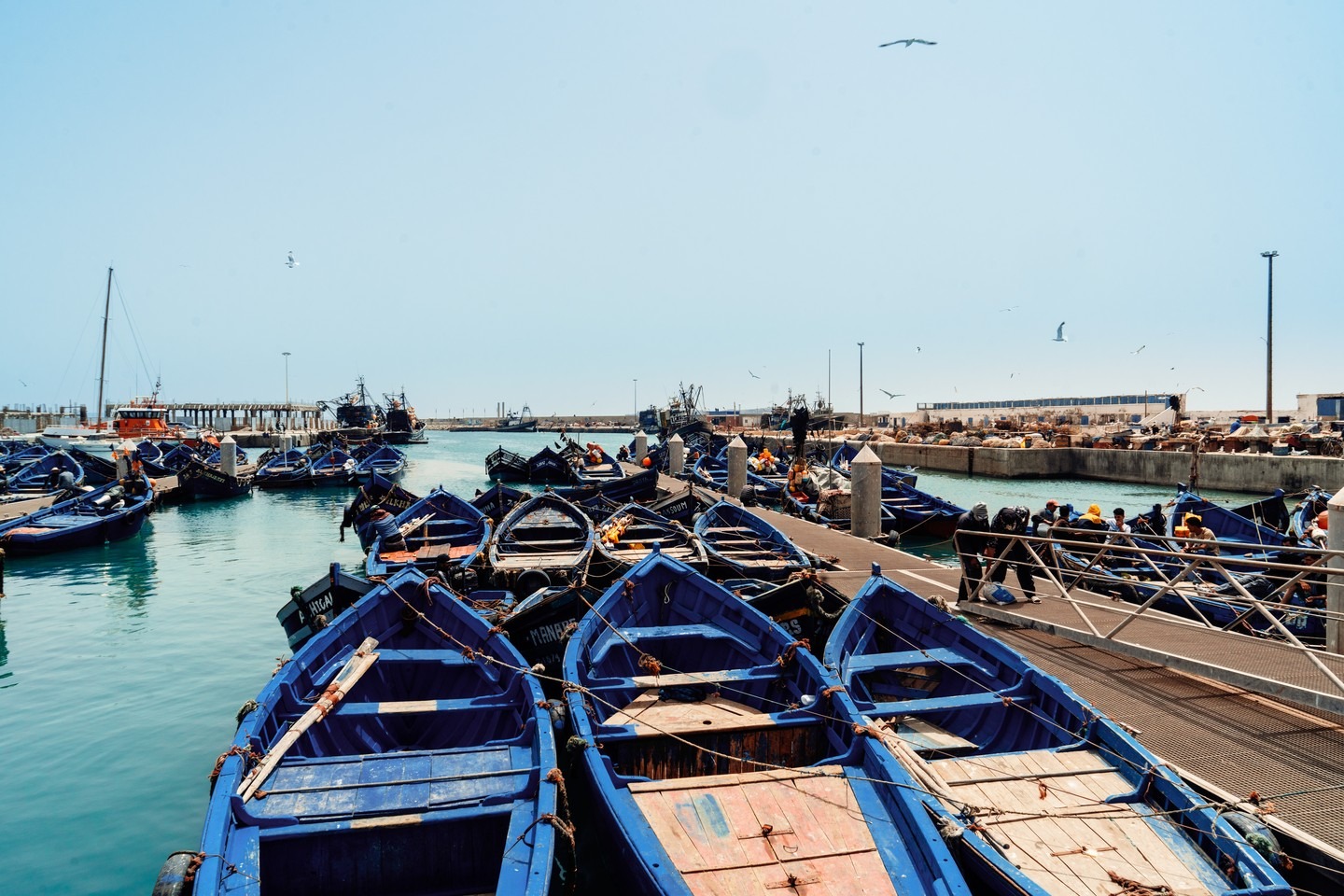 Visite du port, monument historique au charmant décor traditionnel construit en 1770 pour faire de lui le plus important port de commerce international, à la Bab el-Marsa porte de la marine, fortifiée datant du 18e siècle qui est l'une des principales et imposantes portes de la médina, à la Sqala, édifiée en 1769 avec les pierres de l'ancien "Castelo Real".